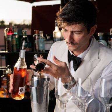 La mixology porta la firma del bar manager Angelo Di Giorgi, con una drink list di cinque signature cocktail pensati come piccoli viaggi sensoriali. Tra questi spicca il Terrazza Romana, un sorso profumato a base di liquore al fico, agrumi, sciroppo al rosmarino e prosecco. Ogni drink viene accompagnato da una selezione di canapè caldi e freddi curati dallo chef Andrea Sangiuliano, che uniscono creatività e materia prima di qualità.