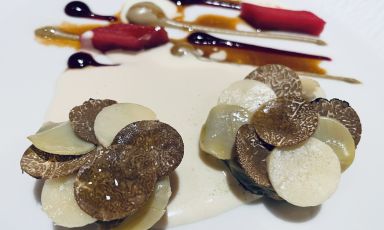Che gioia ripensare alle entrée di benvenuto: tacos di sesamo nero con tartare di spigola e sferificazioni di lattuga di mare; chips di tapioca e alghe con julienne di calamaro al sakè; bignè salato con salsa di melanzana e miso,polvere di ibisco; cannolo di carota viola salsa al pack-choi e alga nori; alice yuba e burrata. Buri: Ricciola frollata 14giorni, olio di negi e salsa tosa. Urokoyaki: gallinella frollata 9 giorni cotta alla brace, salsa age, melanzana al vapore e cime di rapa. Ciotola di riso al vapore. Adoro. Red Snapper: scorfano in tempura frollato 9 giorni, salsa shiroi sakè, ume con torba di whisky. Nigirizushi: capasante alla brace; salmone e tartufo nero pregiato; toro e tartufo bianco; akami e foie gras; ventresca di ricciola e limone. Temaki di tonno rosso. Nibe: Ombrina frollata 12 giorni cotta alla brace, salsa sedano rapa e vongole, zucca, koji e fungo shiitake. Amazake: pesche sciroppate, namelaka alla mandorla e spuma amazake con schiuma di latte croccante e meringa. Piccola pasticceria: ricostruzione di un amarena, bignè crema allo yuzu e polvere di miso bianco, cioccolatino con cuore fondente di sakè.