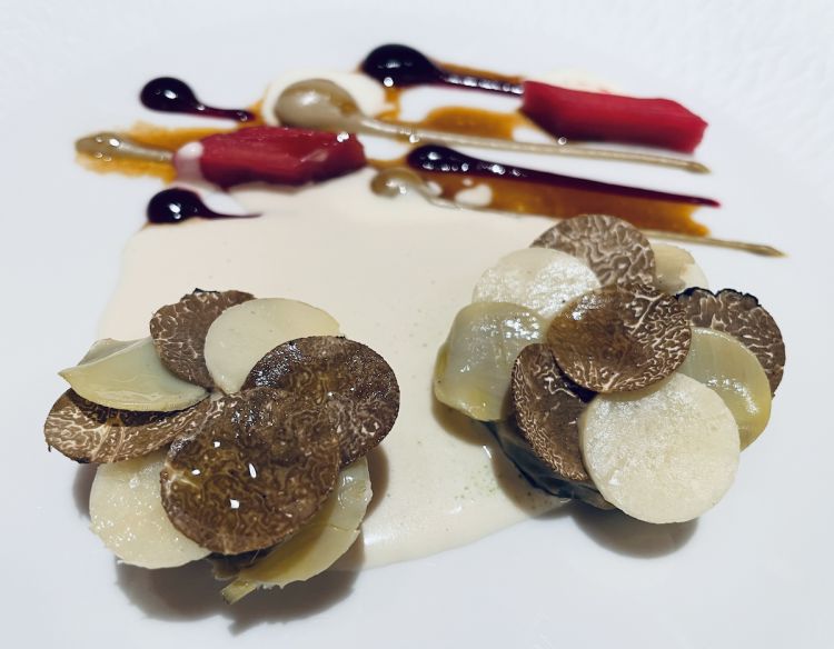 E, visto che mi trovavo nell’ultimo DaV aperto, non mi sono fermato al carciofo finalista. Tizzanini mi ha convinto con Spaghetto di tonno bagna cauda e crumble di pistacchio; Caccia al cacciucco; Baccalà candito e le sue trippe con spuma di patate affumicate; Viti, scampi, cozze bouchot e pesto alle erbe; Che cavolo di risotto, un risotto mantecato con crema di broccolo, gambero viola marinato al katsuobushi, broccolo in agrodolce e nuvola di alice; Branzino alla griglia, con erbe e carpaccio di pomodori cuore di bue; infine Brioche calda con gelato al caffè e cannella.