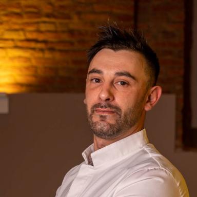Ha un'eleganza innata la cucina di Simone Breda, patron del ristorante Sedicesimo Secolo. Carattere schivo e riservato, si "accende" nel momento in cui deve raccontare l'amore per il suo territorio, per le materie prime locali bresciani e lombarde che riesce a sublimare con la sua mano raffinata. Allievo di Marchesi, dal Maestro ha mutuato una cucina tecnica, precisa, profonda nel gusto ma senza mai eccedere in numero di ingredienti alla ricerca di uno stupore passeggero. La sua capacità unica è quella di creare piatti semplici a palato, ma complessi nel loro “dietro le quinte”.