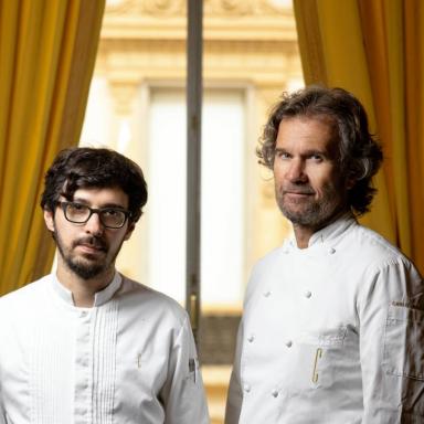 Luca Sacchi, erede naturale della scuola, partendo dalla pasticceria, da qualche anno guida la cucina con una voce propria: nitida, contemporanea, curiosa. Si riconosce la sua mano precisa e la sua voglia di portare su una tavola alta le preparazioni “della festa” del passato: il menu, tra Risotto in gabbia con ragù di cortile, tartufo e marsala o Vitello alla milanese con terrina di patate e fontina o Trota in bellavista, gioca con la tradizione senza svuotarla del suo senso.