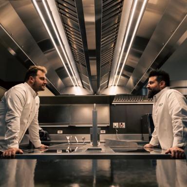 Forti dei successi di pubblico e critica (nell'invidiabile palmares spiccano due stelle Michelin) hanno puntato su un progetto ambizioso che ha preso le forme di un ambiente raffinato e originale, dove ogni dettaglio nasce da riflessioni profonde. Da una parte, la zona bar (e che bar!) con due tavoli dedicati agli aperitivi e al dopocena davanti alle vetrine che custodiscono tante bottiglie pregiate. Dall'altra, la sala principale dove domina la scena la cucina a vista con di fronte un'infilata di 4 tavoli, una nicchia più appartata e un bancone da 6 comodissime sedute.