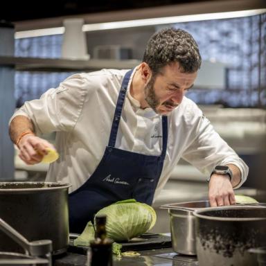 Nella seconda generazione di cuochi spagnoli post-Ferran Adria, spicca il lavoro di Ricard Camarena, il cuoco valenciano che non smette mai di sperimentare. Te lo fa capire fin da subito, maneggiando in apertura del degustazione, davanti al cliente, tranci di tonno marinati nella carruba, un esercizio che regala al pesce gradi diversi di complessità gustativa.