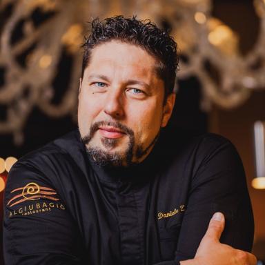 Va subito detto che questa insegna bizzarra (è l'acronimo dei primi gestori e delle rispettive consorti) vanta una delle terrazze più panoramiche di Venezia. La vista spazia meravigliosamente sulla laguna e nessuno può rimanerne indifferente: anche lo chef Daniele Zennaro conferma di esserne subito rimasto folgorato. Così, approdato qui nel 2021 dopo varie esperienze di livello (dal Luna Baglioni al Bauer e poi i 7 anni con Irina Freguia al Vecio Fritolin), ha sviluppato un attento percorso di studio e sperimentazione che lo ha portato a raccontare con eleganza la stagionalità delle materie prime lagunari, di terra e di mare.