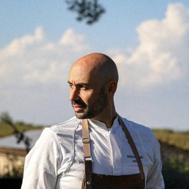 La storia di Elena e Simone Migliorucci è di quelle che vanno in una direzione opposta rispetto alla normalità del mondo ristorativo: sono partiti da un’osteria situata nel borgo di Montefollonico, gestita per vent’anni, per poi trasferirsi all’interno di Villa Svetoni, un resort dedicato al vino dove è stato ricavato il ristorante. Un passaggio effettuato senza problemi, grazie all’arrivo in cucina di Mirko Marcelli, chef proveniente dal Lazio ma già operante sul territorio.