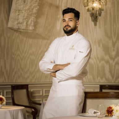 Agostino ha 32 anni e arriva da Castellamare di Stabia. Il suo tasso di golosità è elevato, con in più la capacità di tenere a freno i condimenti. E si interfaccia bene con Bologna. Si esprime attraverso quattro menù, compreso uno vegetariano per essere al passo coi tempi. Vivere la contemporaneità guardando al futuro come col Dashi, rape e verdure primaverili e al centro una rosa di rapa rossa e daikon marinato. Quindi Carciofo arrosto, tuorlo marinato fino al piatto simbolo: il Mangiafagioli, una tagliatella ai fagioli borlotti, con cozze e plancton.