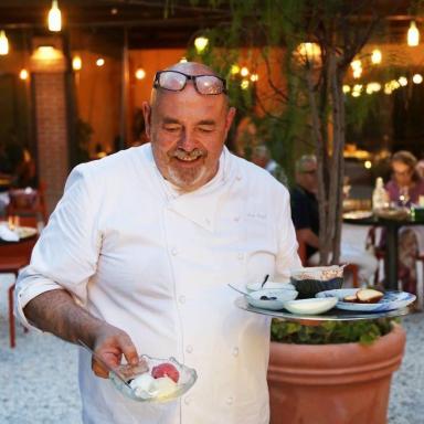 per l’accoglienza dello chef che inizia da una mini cassetta in legno: al suo interno le colorate crudité dell'orto, adagiate su di un terriccio di parmigiano, pangrattato e olive nere. Per la sobria eleganza delle sale interne, impreziosite dalle creazioni dell’artista catalano Juan Crus. Per ritrovare la saggezza della cucina di una volta.Menu di degustazione