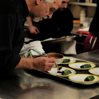 In questo luogo di fascino e mistero, ha preso forma il progetto dello chef lucano, ma bolognese di adozione, Mario Ferrara che parte dal raccolto di “casa” per strutturare il suo menù. Grande importanza alle verdure, valorizzate attraverso una tecnica sapiente e mai leziosa. Sempre presenti le scelte di carne e pesce in una carta che, legata alla stagionalità e ai prodotti disponibili, varia quasi quotidianamente. Sostenibile anche il percorso di degustazione con sei portate decise a sorpresa dalla cucina.