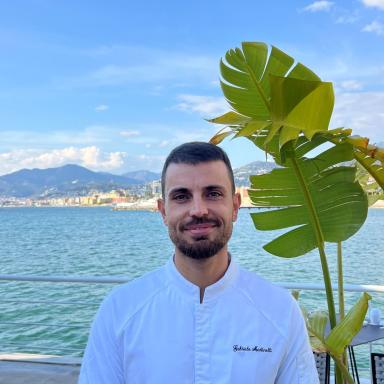 Poniente è un approdo di stile alla Marina di Arechi: legni chiari, luce radente, terrazza che intercetta l'orizzonte e una sala che scorre naturale verso la lounge. La cucina di Gabriele Martinelli, resident chef, parla un lessico di mare contemporaneo, fatto di freschezze iodate, acidità educata e salse leggere che amplificano il pescato senza appesantirlo.