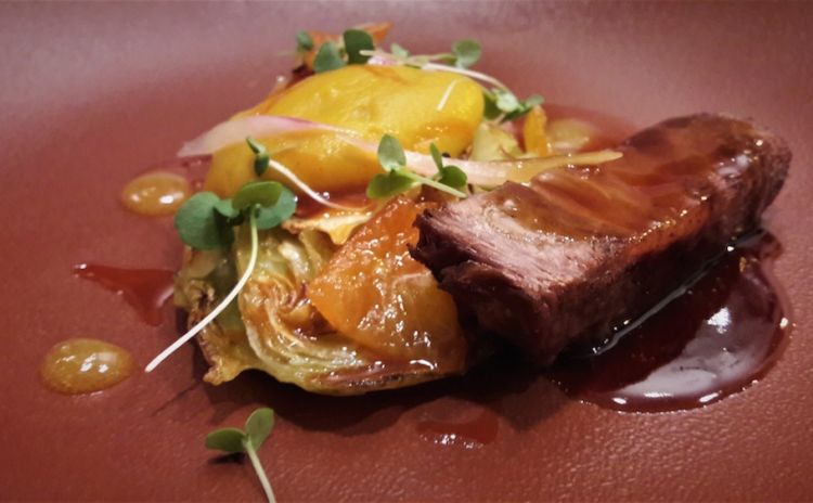Guancia di vitello, cavolo verza, crema di carota e kumquat candito